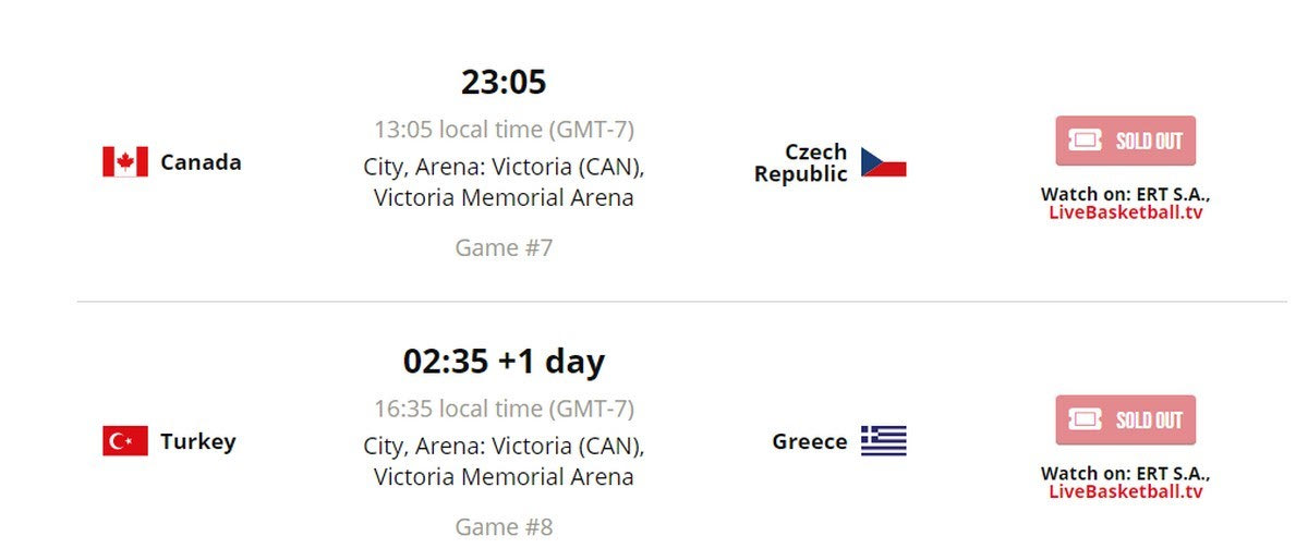 Σύμφωνα λοιπόν με την FIBA, η Ελλάδα θα αντιμετωπίσει την Τουρκία τα χαράματα της Κυριακής (4/7), στις 02:35 (τηλεοπτική μετάδοση από την ΕΡΤ3 και LIVE από το SPORT24).