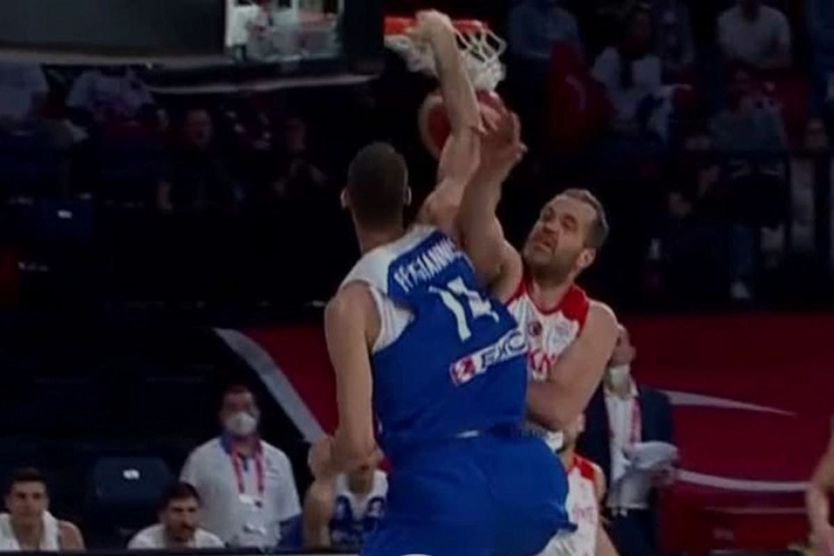 Ο “Big Papa” κάρφωσε εντυπωσιακά προ του Ογούζ Σαβάς που επιχείρησε να τον σταματήσει, δίχως φυσικά αποτέλεσμα.