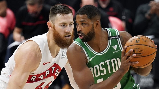 Ο Τρίσταν Τόμπσον των Μπόστον Σέλτικς σε φάση από αγώνα με τους Τορόντο Ράπτορς