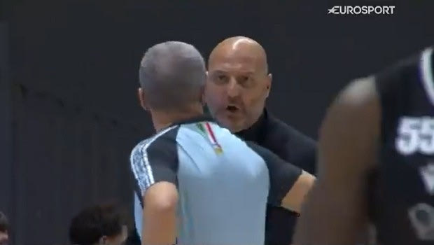 Ο προπονητής των γηπεδούχων ήταν έξαλλος με τις αποφάσεις των διαιτητών, δεν σταμάτησε να τους φωνάζει και να διαμαρτύρεται, με τον Καρμέλο Πατέρνικο (διαιτητής της EuroLeague) να τον αποβάλλει με δύο τεχνικές ποινές λίγο πριν από την ολοκλήρωση της πρώτης περιόδου στο παιχνίδι, κι ενώ η Βίρτους Μπολόνια ήταν στο -12 (8-20).
