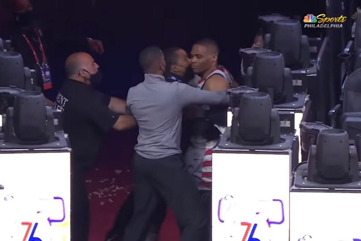 Ο Ράσελ Γουέστμπρουκ εκνευρίστηκε με φίλαθλο των Σίξερς που του πέταξε ποπ-κορν ενώ ο σταρ των Γουίζαρντς αποχωρούσε τραυματίας από το παιχνίδι, με αποτέλεσμα να προσπαθήσει να ανέβει στην εξέδρα, αλλά να τον συγκρατούν.