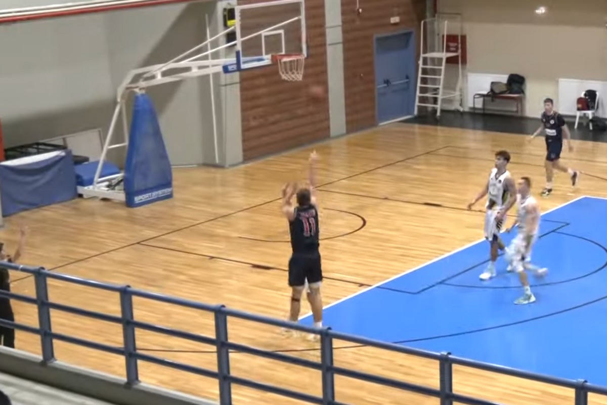 Ο παίκτης της ΧΑΝΘ δέχθηκε πάσα ενώ ήταν ήδη στον αέρα και επιχείρησε τρίποντο με σπάσιμο της μέσης, σημειώνοντας ένα υπέροχο καλάθι.