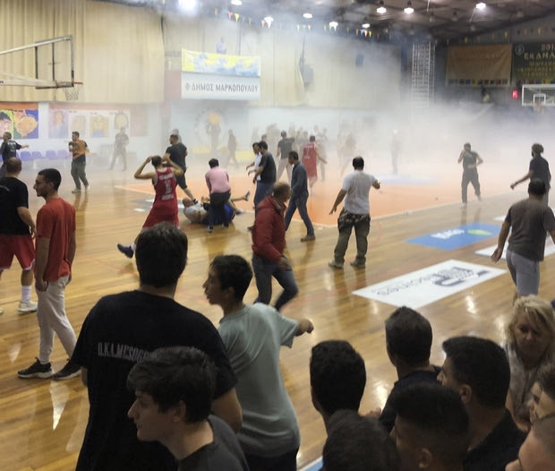 Ένας οπαδός χρησιμοποίησε πυροσβεστήρα, με αποτέλεσμα η κατάσταση στο κλειστό γήπεδο του Μαρκόπουλου να γίνει αποπνικτική και με το σκορ στο 61-51 η αναμέτρηση να διακοπεί οριστικά. Τα επεισόδια ήταν μεγάλης έντασης, ο αγώνας δεν μπορούσε να ολοκληρωθεί καθώς οι ζημιές ήταν μεγάλες και κάπως έτσι γράφτηκε άλλη μια “μαύρη” σελίδα στην ιστορία του ελληνικού μπάσκετ.