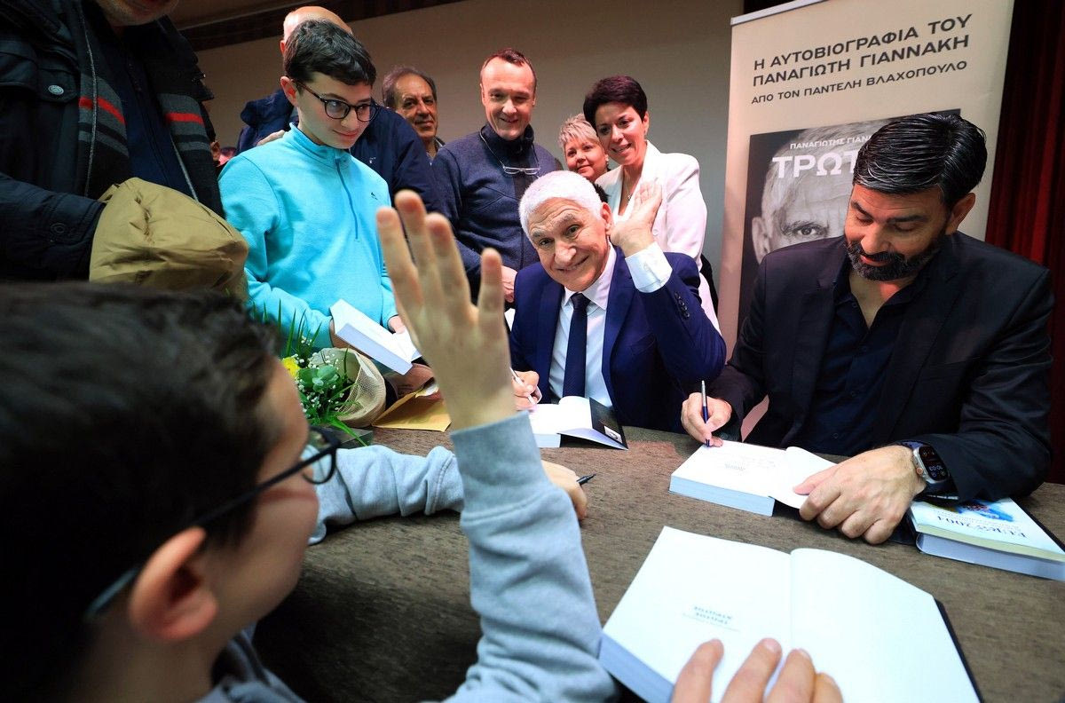 Εκατοντάδες άνθρωποι κάθε ηλικίας βρέθηκαν την Τετάρτη (29/1) στη Λάρισα, προκειμένου να παρακολουθήσουν από κοντά την παρουσίαση της αυτοβιογραφίας του Παναγιώτη Γιαννάκη "Τρωτός Άτρωτος". Συγγραφέας του βιβλίου είναι ο δημοσιογράφος και διευθυντής του SPORT24, Παντελής Βλαχόπουλος.