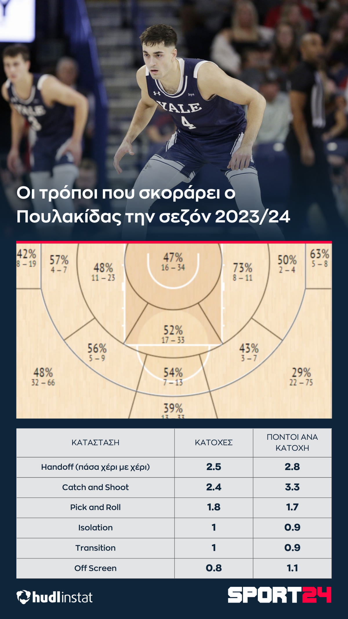 Ο Τζον Πουλακίδας έγινε το πρόσωπο της ημέρας στις ΗΠΑ χάρη στην απίστευτη εμφάνισή του στην νίκη του Γέιλ επί του Όμπερν στο τελικό τουρνουά του NCAA και το SPORT24 τον παρουσιάζει, ενώ αναλύει και το παιχνίδι του με την βοήθεια του Hudl Instat.
