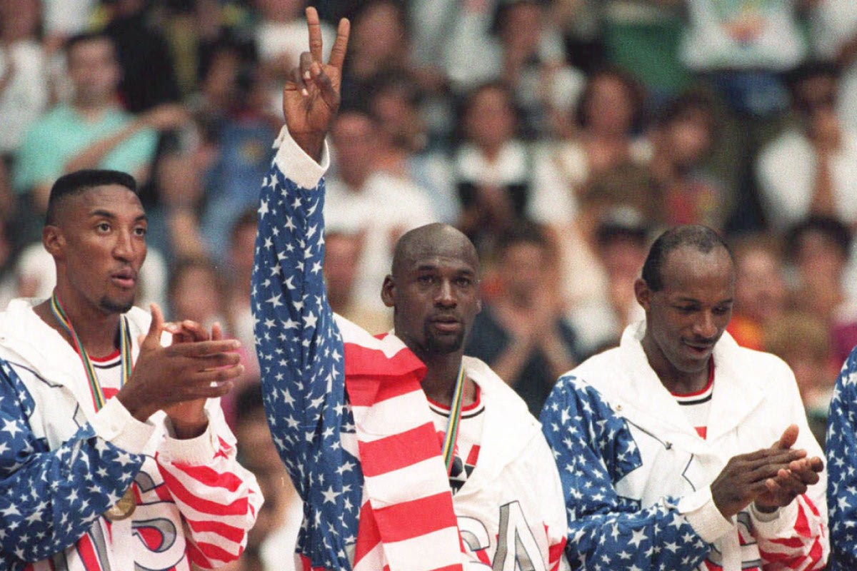 Ο τότε χορηγός της Εθνικής Ομάδας των Ηνωμένων Πολιτειών ήταν η Reebok, ωστόσο, ο Τζόρνταν συνεργαζόταν με τη NIKE και κάπως έτσι βρέθηκε σε δίλημμα. Τελικά ο Air βρήκε τρόπο να “ξεγλιστρήσει” χωρίς συνέπειες από την ομοσπονδία, αλλά και χωρίς να προδώσει τη αθλητική εταιρεία με την οποία είχε αποκλειστική συμφωνία, κρύβοντας το logo της Reebok με μία αμερικανική σημαία που έριξε στον ώμο του.