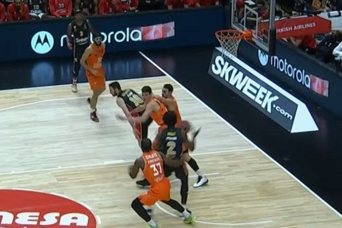 Ο Κώστας Παπανικολάου βρέθηκε κλεισμένος από δύο παίκτες της Βαλένθια στη καρδιά της ρακέτας, αλλά είχε την οξυδέρκεια να σερβίρει μία behind-the-back πάσα στον Μόουζες Ράιτ, που είχε μείνει ελεύθερος και κάρφωσε ανενόχλητος στο ισπανικό καλάθι.