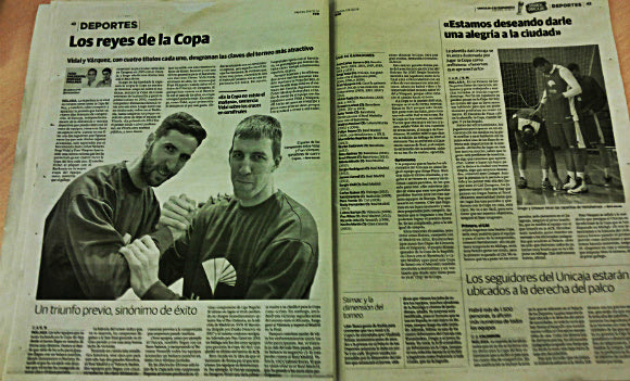 Το δίδυμο των Βιδάλ, Βάσκεθ πρωταγωνιστεί στις σελίδες της ” Diario Sur” ως οι ”Βασιλιάδες του Copa”. Βλέπετε, είναι οι παίκτες με τις περισσότερες κατακτήσεις στον θεσμό μετά τον πολυνίκη Χουάν Κάρλος Ναβάρο των έξι τίτλων. Ο Σέρχι Βιδάλ έχει κατακτήσει τέσσερις φορές το Copa del Rey με τη φανέλα της Τάου (2002, 2004, 2–6, 2009). Όσον αφορά τον Βάσκεθ, ο θηριώδης σέντερ έχει κατακτήσει μια φορά τον τίτλο με τη Μάλαγα (2005) και άλλες τρεις (2007, 2010, 2011) με τους ”μπλαουγκράνα”.