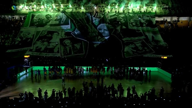 Με ένα τεράστιο πανό, με την εμβληματική μορφή του Παύλου Γιαννακόπουλου, με εικόνες από τα έξι ευρωπαϊκά τρόπαια τίμησαν τη μνήμη του ηγέτη της πράσινης ΚΑΕ οι φίλοι του Παναθηναϊκού. (VIDEO & PHOTO).
