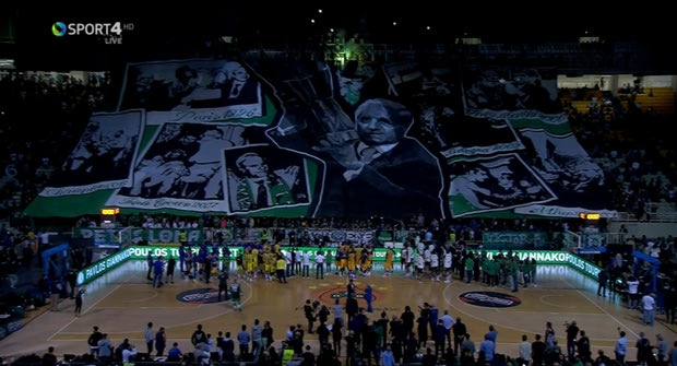 Με ένα τεράστιο πανό, με την εμβληματική μορφή του Παύλου Γιαννακόπουλου, με εικόνες από τα έξι ευρωπαϊκά τρόπαια τίμησαν τη μνήμη του ηγέτη της πράσινης ΚΑΕ οι φίλοι του Παναθηναϊκού. (VIDEO & PHOTO).