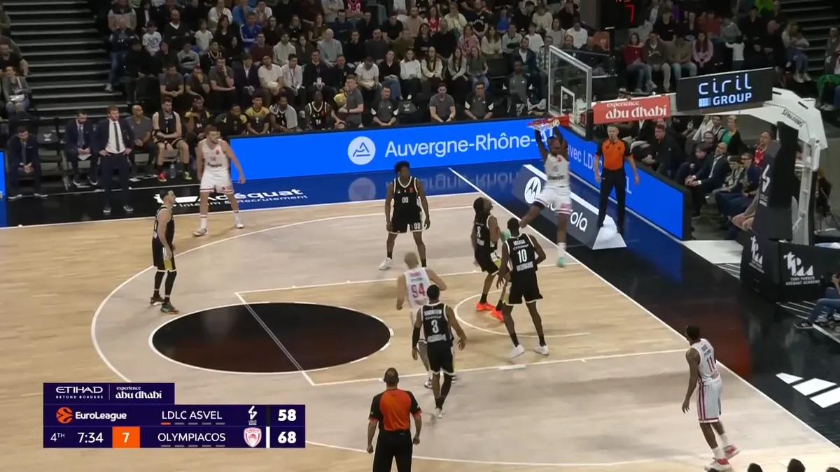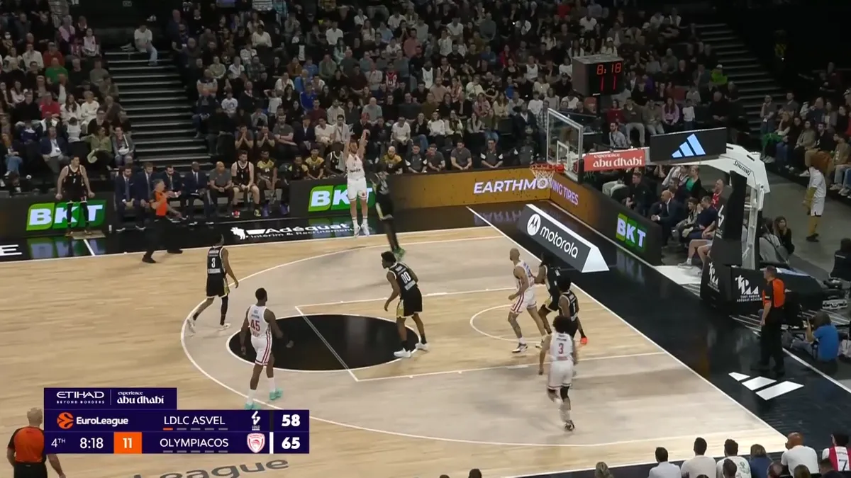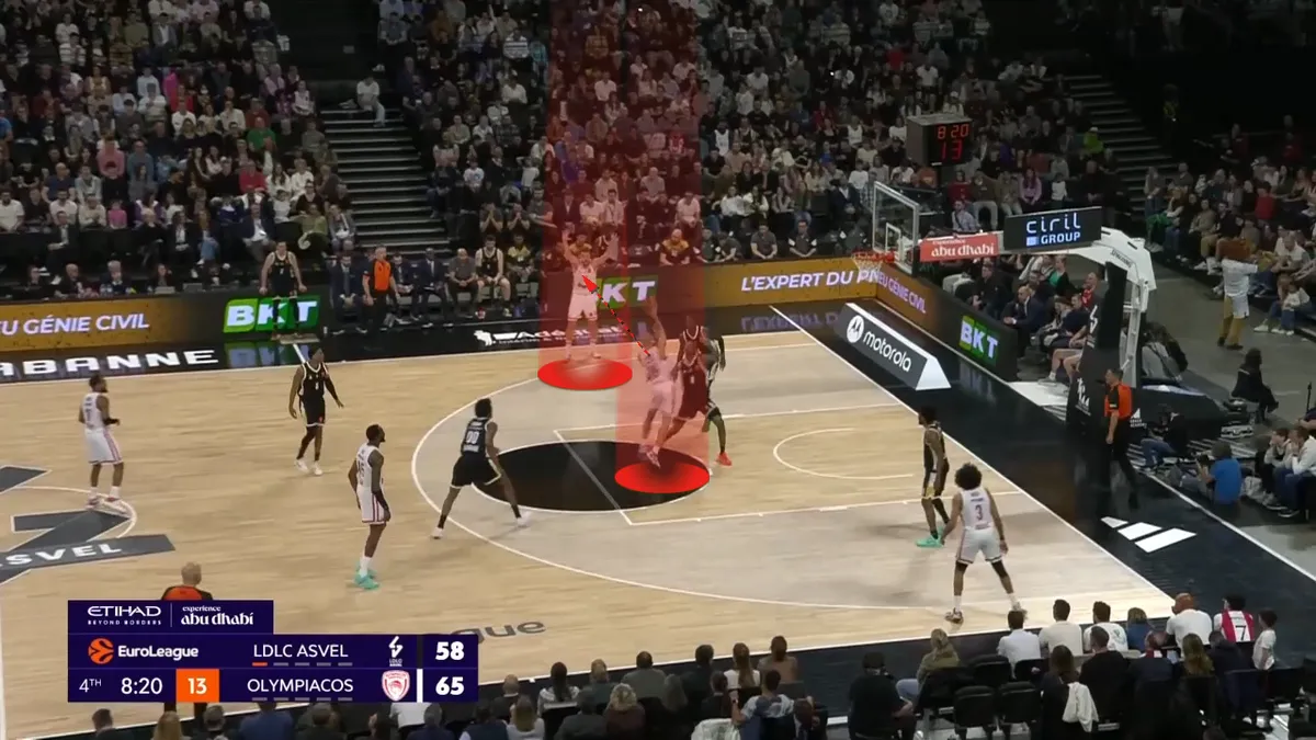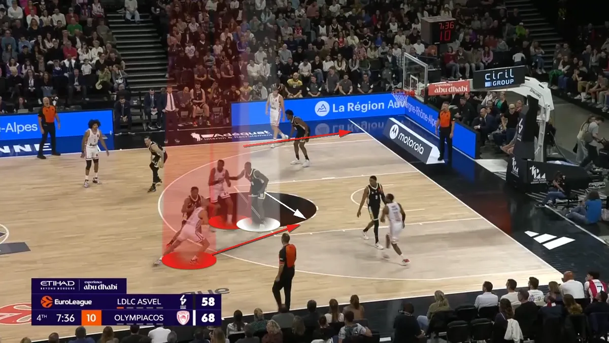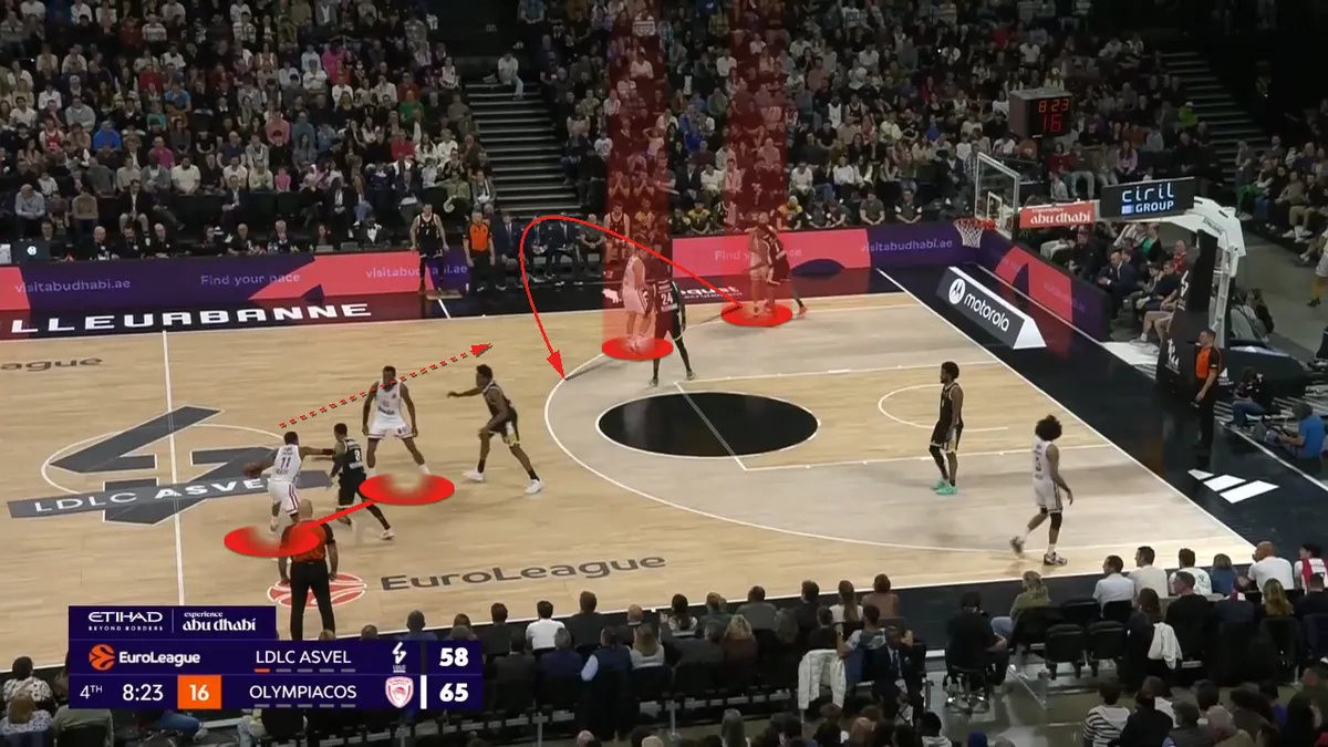 Ο Φουρνιέ έχει κάνε curl και πάει προς το καλάθι, τραβώντας πάνω του την άμυνα της Βιλερμπάν κι έτσι πασάρει αμέσως στον Βεζένκοβ.