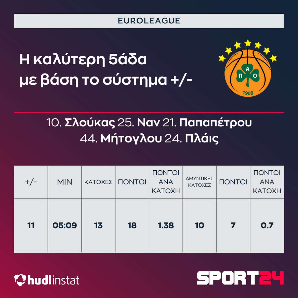 Φάσεις σαν αυτή εξηγούν τι μπορεί να δώσει ο Πλάις. Ένα Stretch-5 πάντα αλλάζει τα δεδομένα, αφού η άμυνα προσαρμόζεται πάνω του. Αυτό ανοίγει χώρους. Η απόδειξη; Σύμφωνα με το Hudl Instat, ο Παναθηναϊκός AKTOR σημείωσε 16 πόντους από κοψίματα στο καλάθι κόντρα την Βιλερμπάν, επίδοση ρεκόρ για φέτος στην EuroLeague. Οι 8 από αυτούς τους πόντους ήρθαν στα 13.5 λεπτά που έμεινε στο παρκέ ο Πλάις (που είχε και +11 στο σύστημα +/-, το καλύτερο ανάμεσα στους συμπαίκτες του) Η μόνη άλλη φορά που σημείωσε ο Παναθηναϊκός AKTOR διψήφιο αριθμό πόντων από κοψίματα στο καλάθι (10 για την ακρίβεια) ήταν τον περασμένο Οκτώβριο, κόντρα στην Ρεάλ. Πάνω από 4 μήνες πριν δηλαδή.
