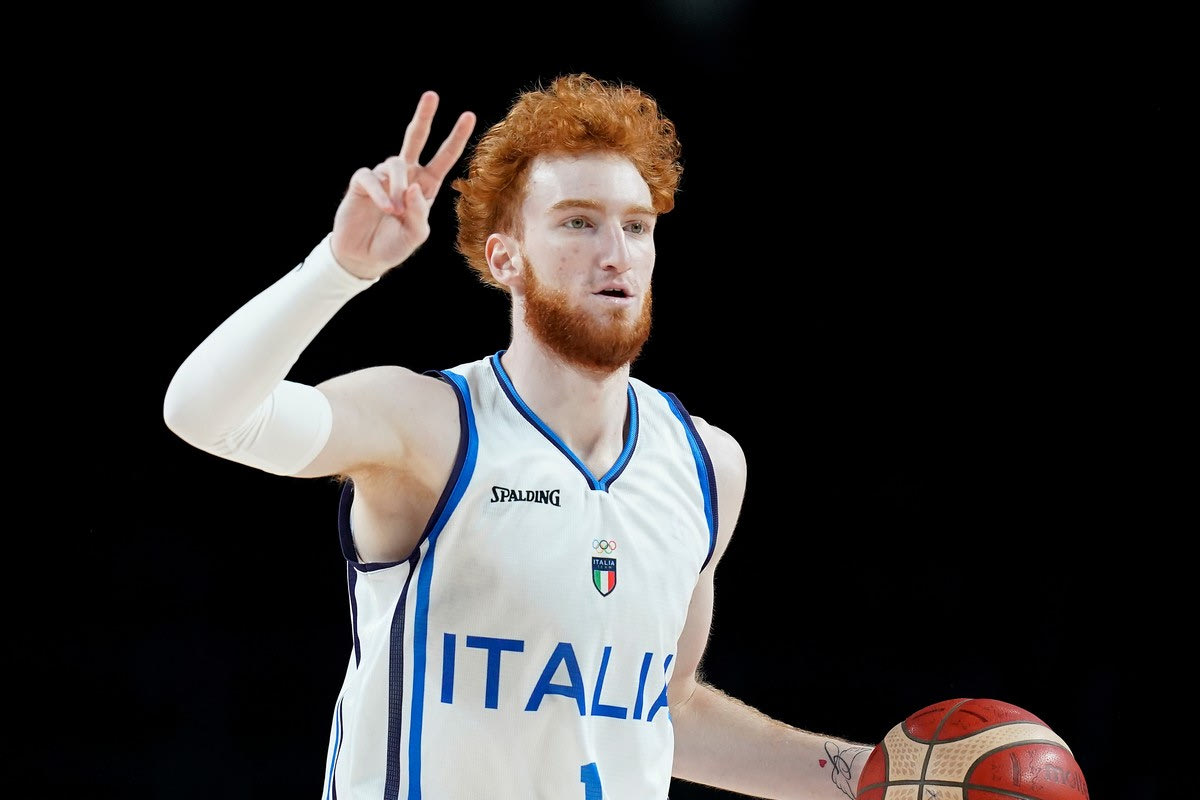 Ο Νίκ Μάνιον με τη φανέλα της Εθνικής Ιταλίας στο ματς με την Γαλλία στους Ολυμπιακούς αγώνες του Τόκιο | 3 Αυγούστου 2021 © 2021 Charlie Neibergall/AP Images