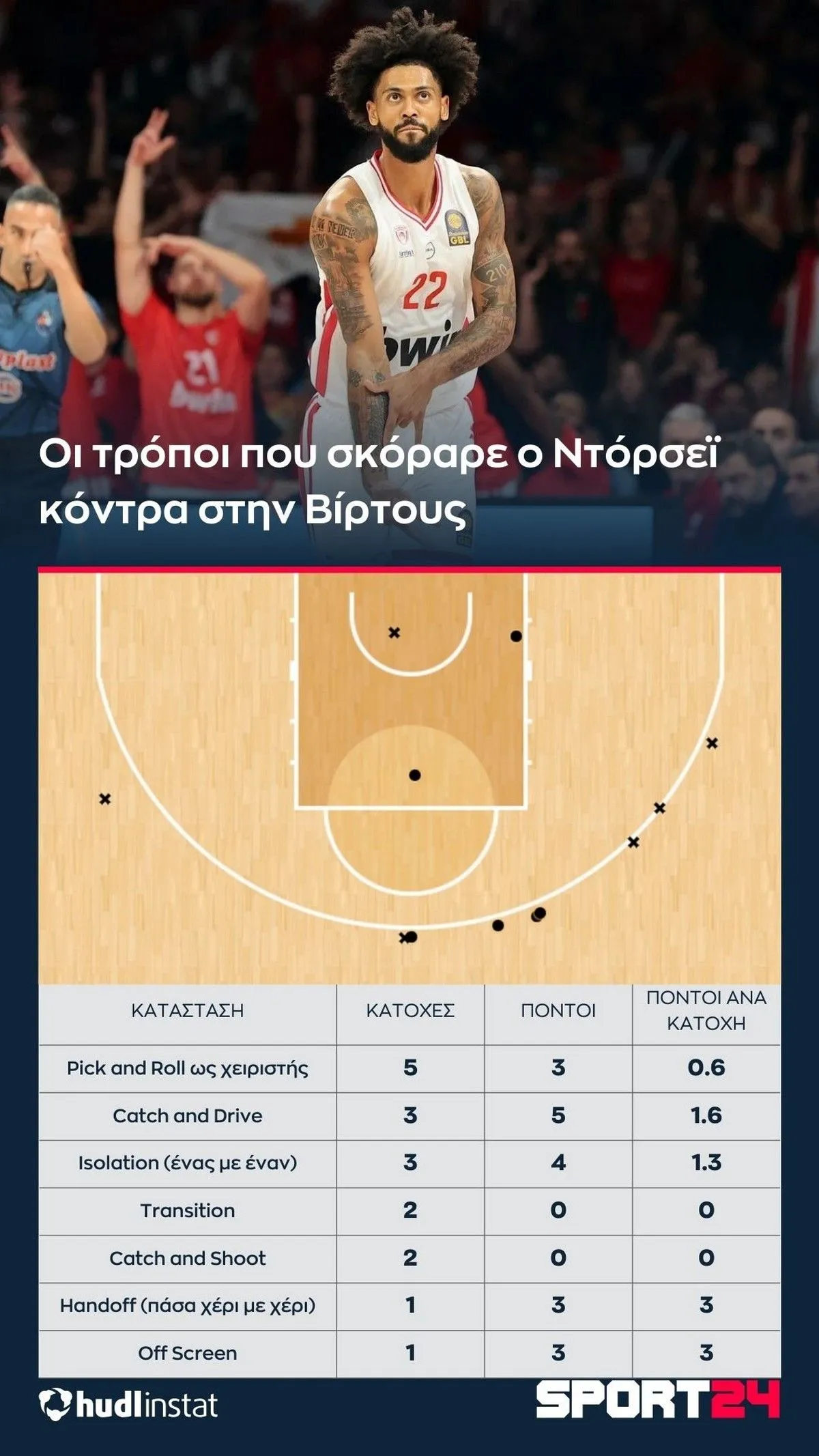 Ο Ντόρσεϊ έχει βελτιωθεί στον τομέα της δημιουργίας, αλλά έχει ακόμα δρόμο. Παραμένει όμως ένας εκ των κορυφαίων εκτελεστών στην EuroLeague, κάτι που απέδειξε και κόντρα στην Βίρτους, με τα προσωπικά καλάθια που σημείωσε.
