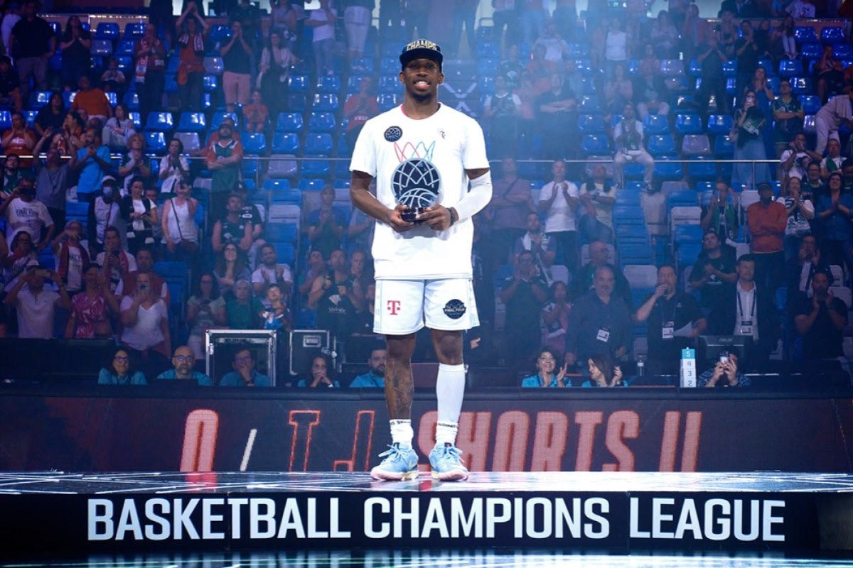 Ο Τι Τζέι Σορτς της Βόννης με το βραβείο του MVP του τελικού του Final Four του BCL @BasketballCL