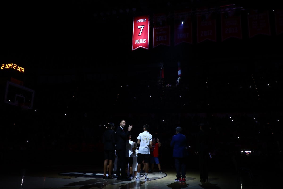 Ο επίλογος της εκδήλωσης δεν θα μπορούσε να είναι άλλος από την απόσυρση της φανέλας του σπουδαίου Βασίλη Σπανούλη. Η φανέλα με το όνομα του και το No7 πήρε την θέση της δίπλα στα λάβαρα με τους τίτλους του Ολυμπιακού, έχοντας περίοπτη θέση στην ερυθρόλευκη έδρα.
