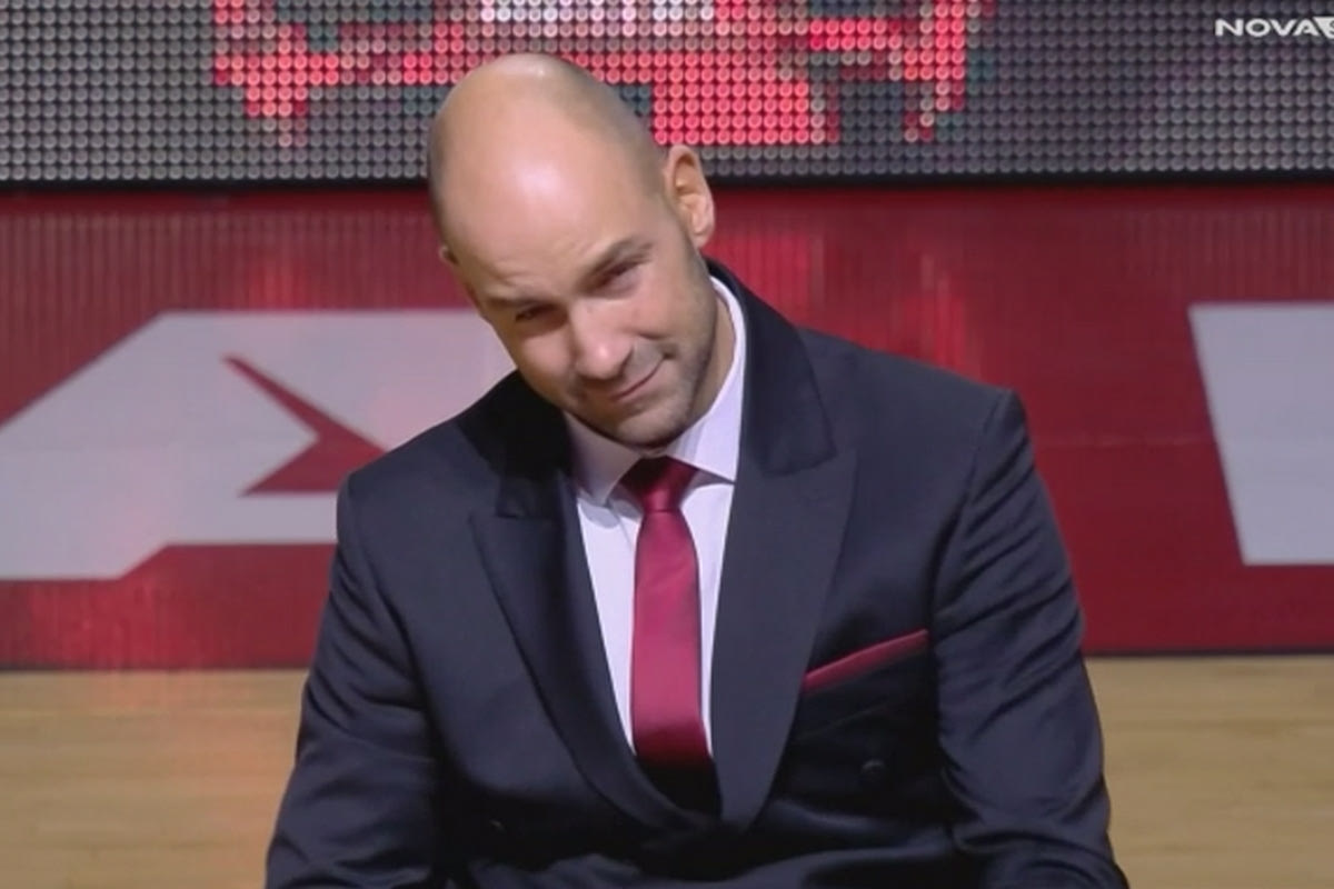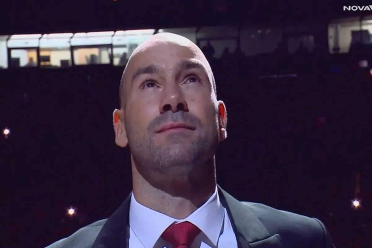 Η συγκίνηση στο πρόσωπό του ήταν εμφανής, με τον ίδιο να ακούει τα λόγια των άλλοτε συμπαικτών του που ήταν μαζί του σε αυτή τη μεγάλη στιγμη.