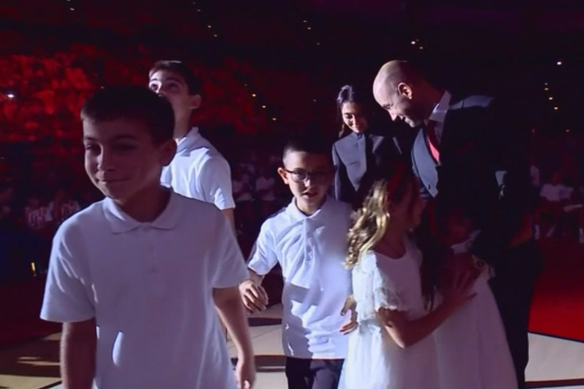 Βούρκωσε ο Βασίλης Σπανούλης, ράγισαν καρδιές: Στον ουρανό του ΣΕΦ η θρυλική φανέλα με το “7′ από τα χέρια των παιδιών του