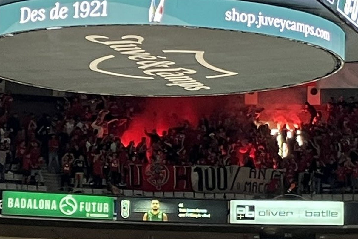 Περισσότερα από 1000 άτομα δημιούργησαν εκρηκτική ατμόσφαιρα στο Παλάου Ολιμπίκ της Μπανταλόνα, με την αστυνομία να επεμβαίνει και να γλιτώνει χειρότερες καταστάσεις, αν και αρκετοί φίλοι της ισπανικής ομάδας είχαν αποχωρήσει από τις θέσεις τους για να μην κινδυνεύσουν. Γενικώς η ατμόσφαιρα στο ευρωπαϊκό μπάσκετ δεν είναι καλή και η μετακίνηση οπαδών δεν δείχνει να είναι, αυτή την εποχή τουλάχιστον, η καλύτερη ιδέα.
