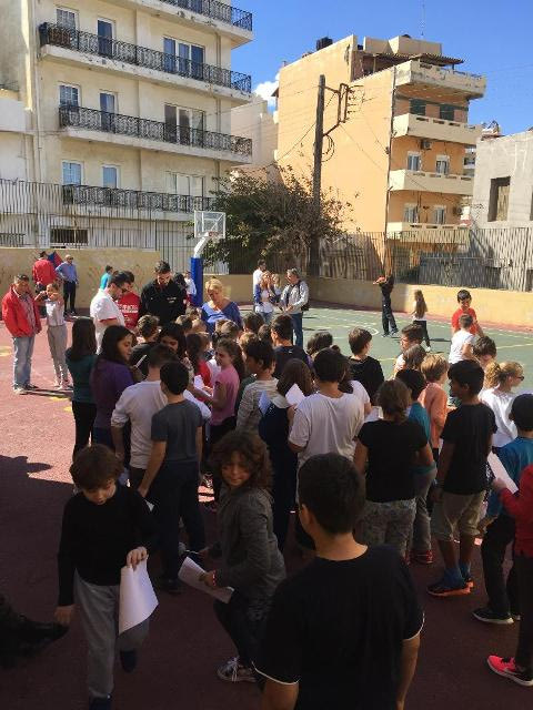 Ιωάννης Παπαπέτρου και Βασίλης Τολιόπουλος επισκέφθηκαν το "Μποδοσάκειο" - 2ο Δημοτικό Σχολείο Ηρακλείου απαντώντας στις ερωτήσεις των μικρών φίλων του μπάσκετ και μοιράζοντας αρκετά αυτόγραφα.