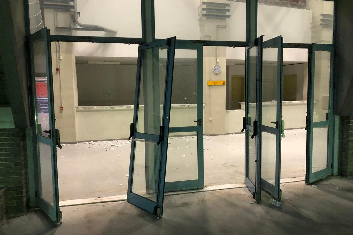 Από τις μάχες σώμα με σώμα ανάμεσα σε οπαδούς των δύο ομάδων, αλλά και από τις συγκρούσεις με τις αστυνομικές δυνάμεις καταστράφηκαν πολλά σημεία του γηπέδου, από τις εισόδους μέχρι τα κυλικεία και κάθε πιθανό κι απίθανο μέρος.