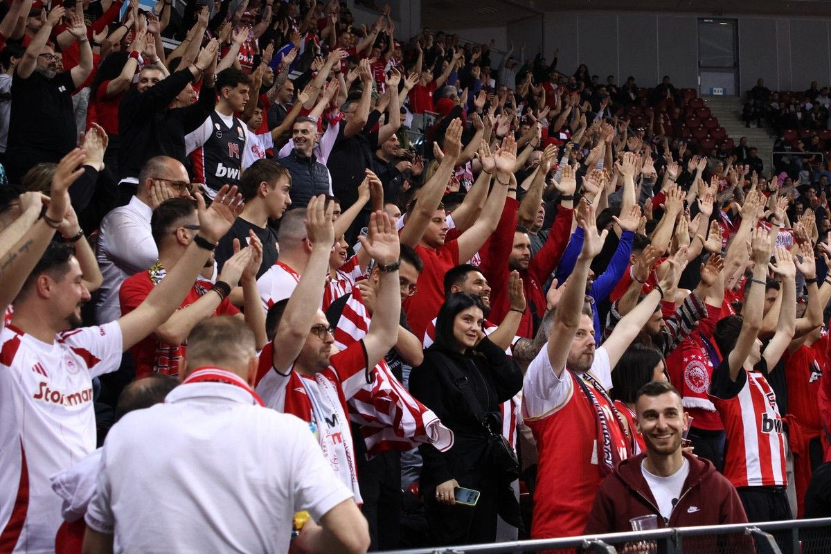 Περίπου 10.000 οπαδοί του Ολυμπιακού έδωσαν τόνο και παλμό στην Arena 8888 στηρίζοντας με τη φωνή τους την ομάδα του Γιώργου Μπαρτζώκα.