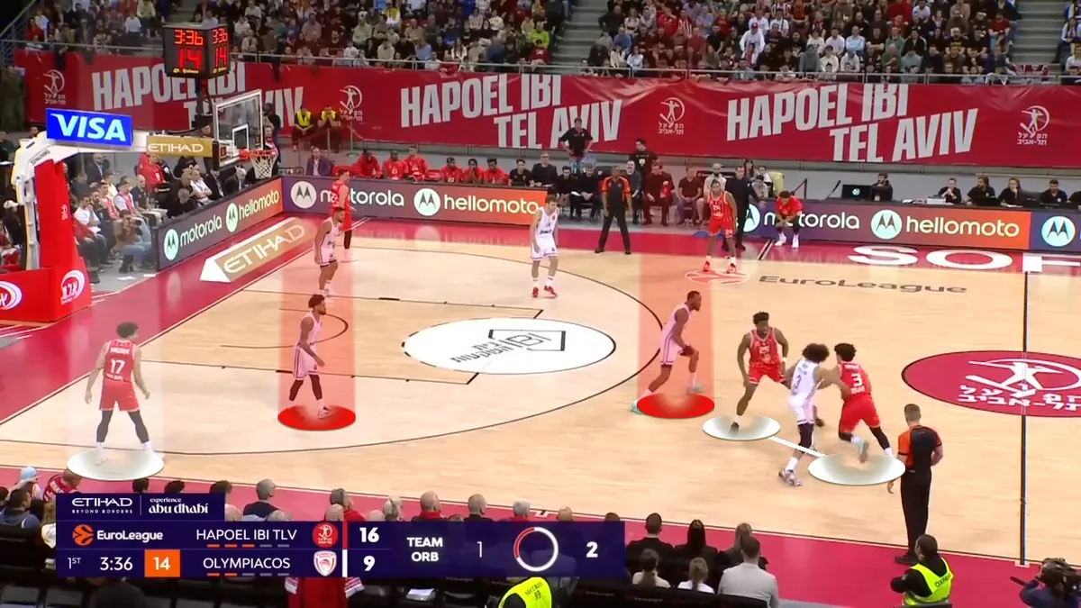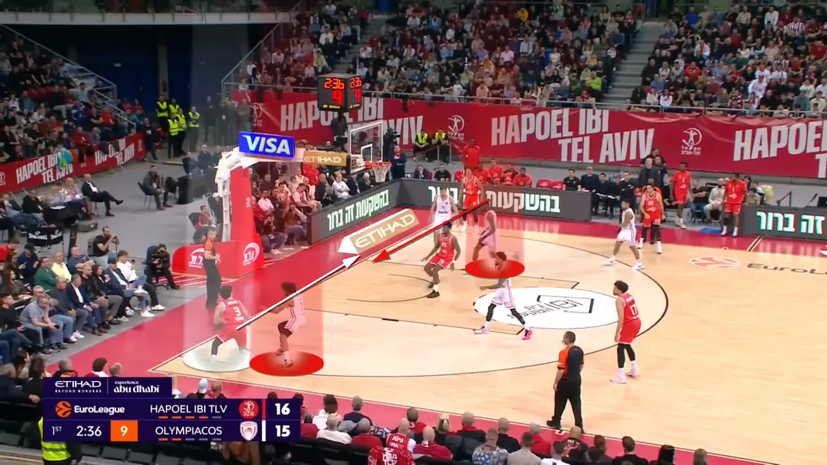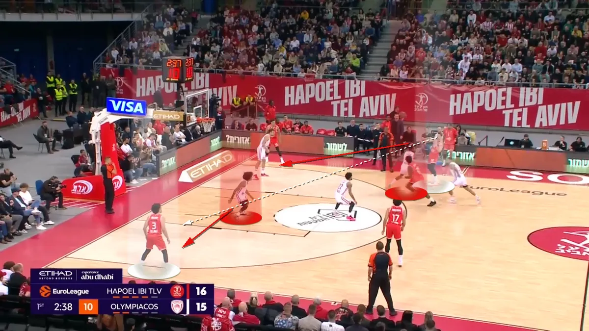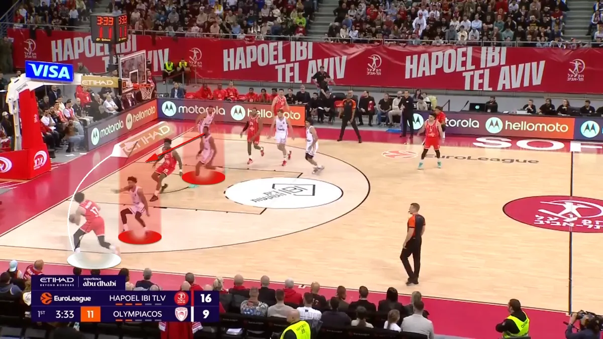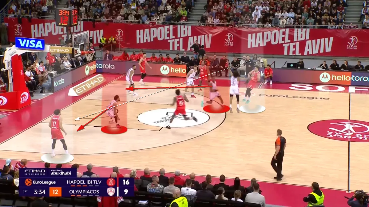 Σύμφωνα με το Hudl Instat, η Χάποελ σημείωσε μόλις 6 πόντους σε κατάσταση Catch and Shoot σε 7 κατοχές. Αυτό σημαίνει ότι ο Ολυμπιακός δεν άφησε ελεύθερα σουτ στην Χάποελ, δεν την άφησε να βρει ρυθμό από την περιφέρεια, την ώθησε προς το καλάθι. Αυτή εξάλλου είναι και η φιλοσοφία των Πειραιωτών και ένας από του λόγους που αμύνονται στο Pick and Roll χωρίς πολλές βοήθειες.
