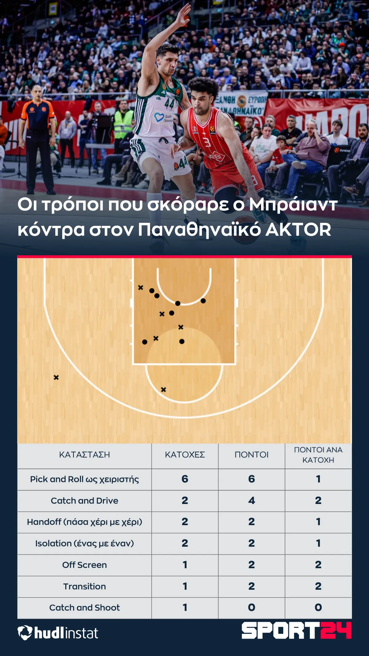 Ο Στέφανος Μακρής αναλύει με την βοήθεια του Hudl Instat την ήττα του Παναθηναϊκού AKTOR από την Χάποελ. Ο σταθερός Μπράιαντ, τα quick Pick and Roll των Τζόουνς-Οντιάσε και το πέρασμα του Μάλκολμ σε θέση 4, που έφερε τούμπα το ματς.