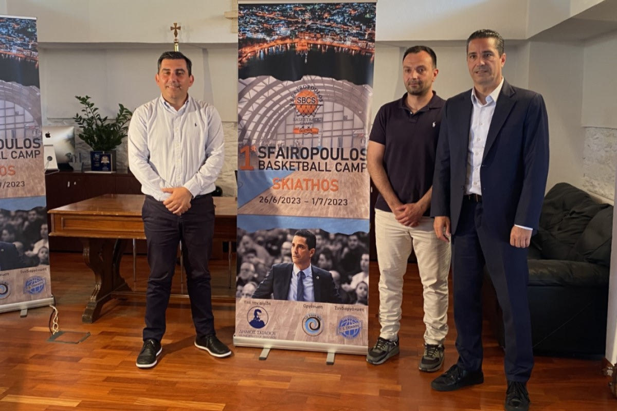 Συνέντευξη Τύπου για το πρώτο Sfairopoulos Basketball Camp Skiathos (26/06-01/07) πραγματοποιήθηκε στο Δημαρχείο της Σκιάθου, δύο μήνες πριν από την έναρξη του καμπ του Έλληνα τεχνικού.