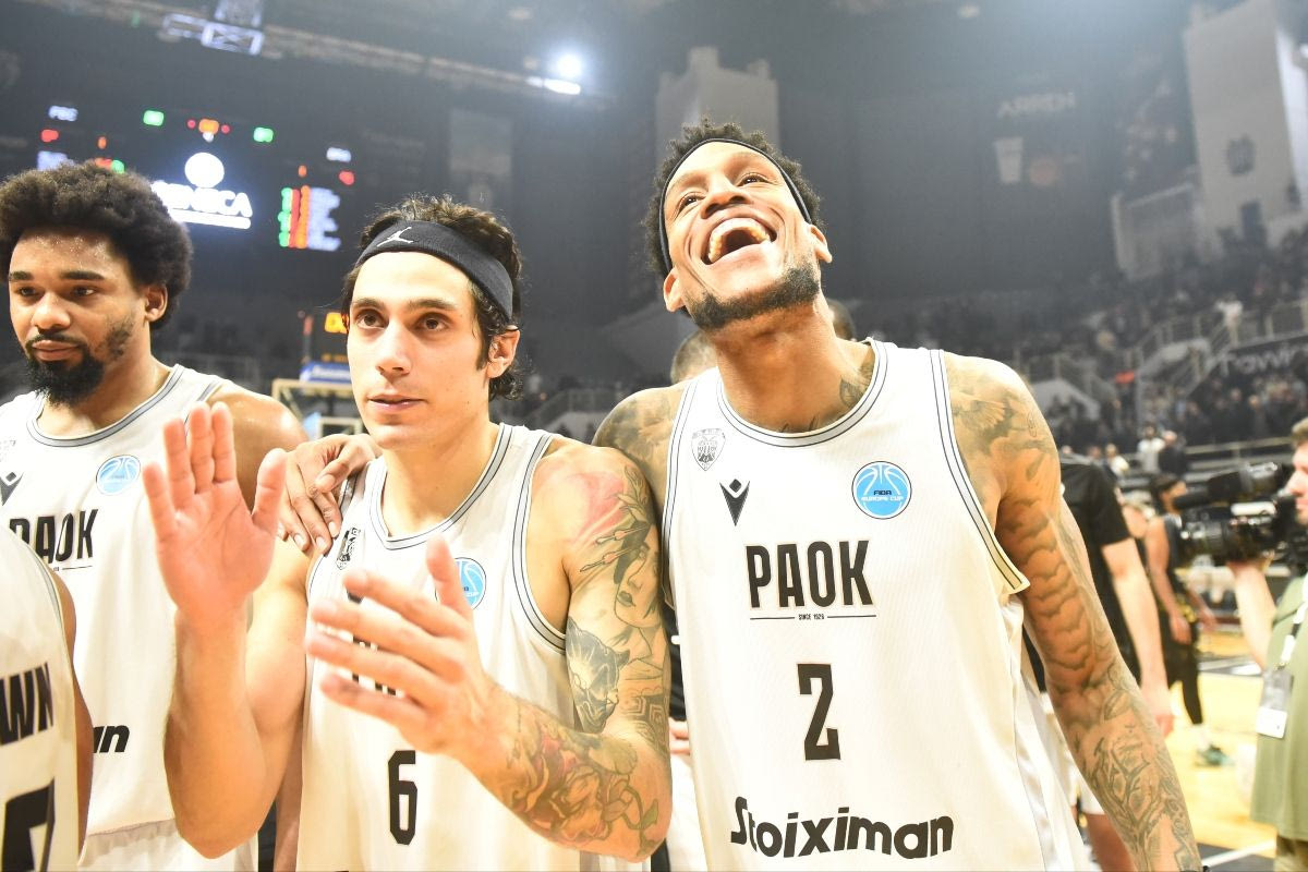 Οι παίκτες του ΠΑΟΚ έτρεξαν ο ένας προς τον άλλον, σχηματίζοντας έναν τεράστιο κύκλο πανηγυρισμού στο κέντρο του παρκέ, με φωνές, αγκαλιές και ένταση που φανέρωνε πόσο πολύ ήθελαν αυτή τη νίκη και την πρόκριση στη φάση των 16.