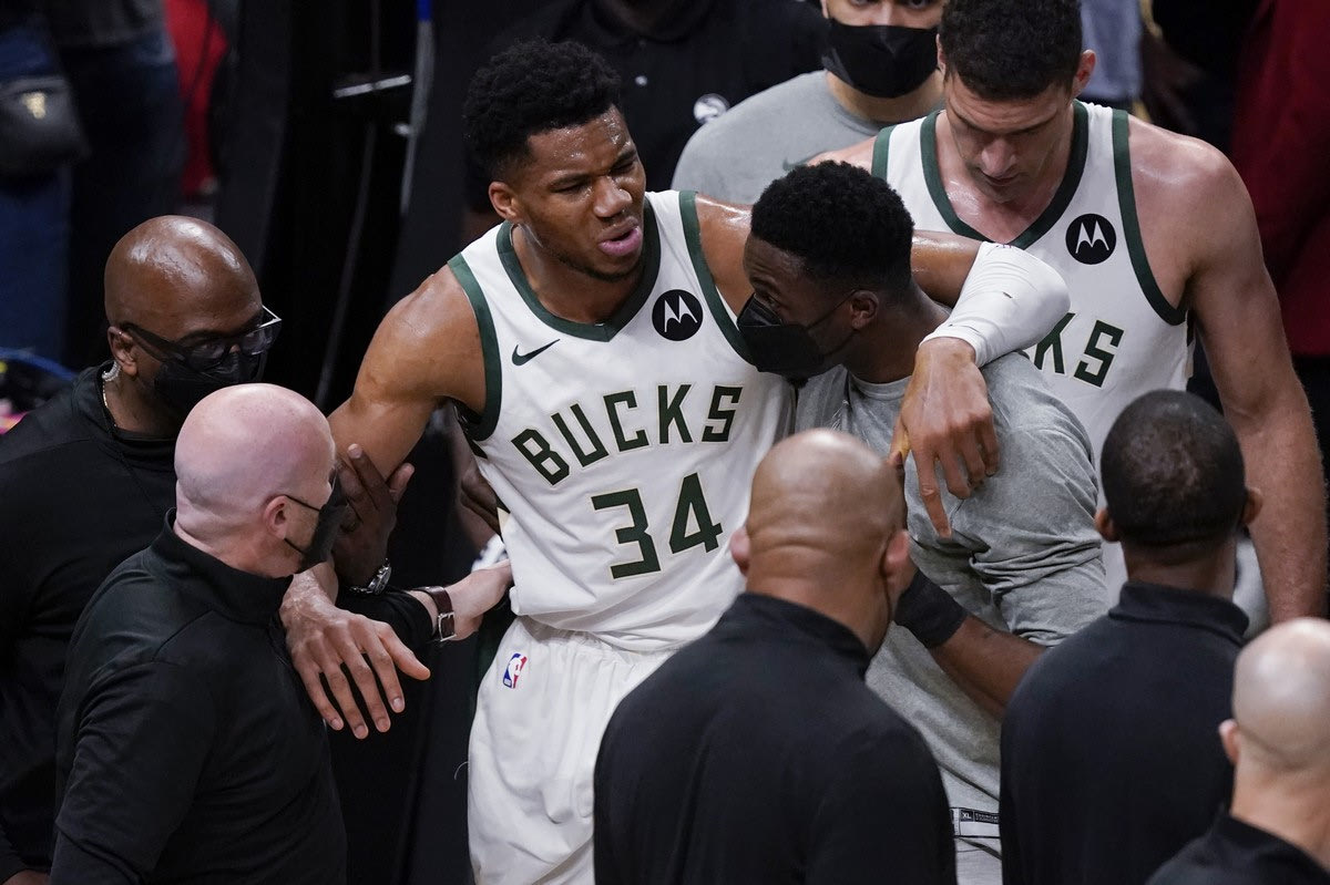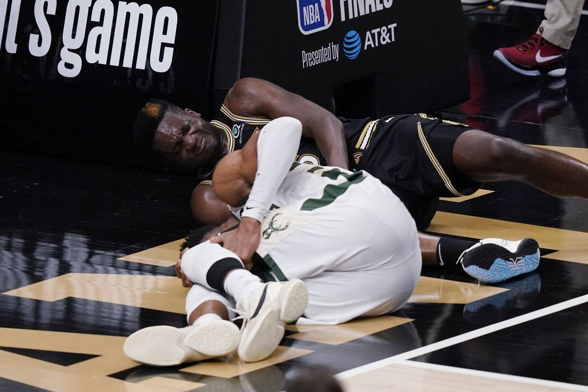 Ο Greek Freak σηκώθηκε με την βοήθεια του Θανάση Αντετοκούνμπο που ανησύχησε και έσπευσε να τον υποστηρίξει, προσπάθησε να περπατήσει με τις δικές του δυνάμεις στα αποδυτήρια της State Farm Arena και τα κατάφερε, με τον κόσμο να τον χειροκροτεί και να του δίνει κουράγιο.