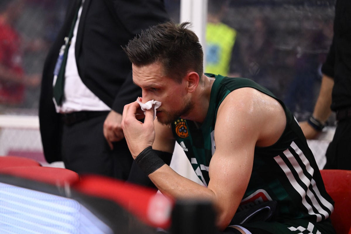 Ο Πολωνός περιφερειακός δεν έχει ξεπεράσει τον τραυματισμό στο πρόσωπο, τον οποίο αποκόμισε στο τρίτο παιχνίδι της σειράς που έγινε στο ΣΕΦ, με αποτέλεσμα ο Χρήστος Σερέλης να μην τον έχει στην προπόνηση της Τετάρτης (14/6) και να μην τον υπολογίζει για το αυριανό ντέρμπι.