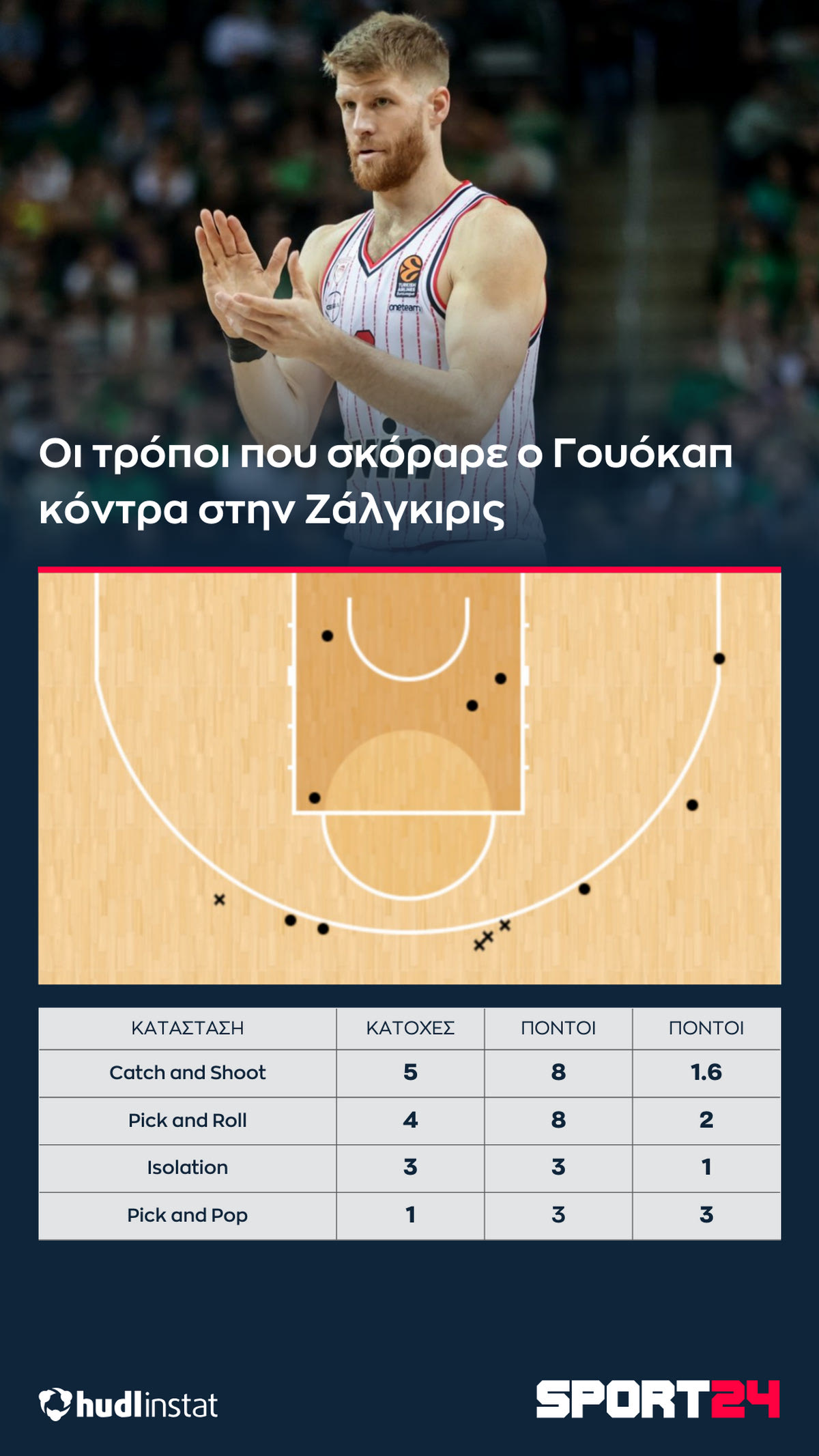 Με κυκλάκι τα εύστοχα σουτ, με “x” τα άστοχα