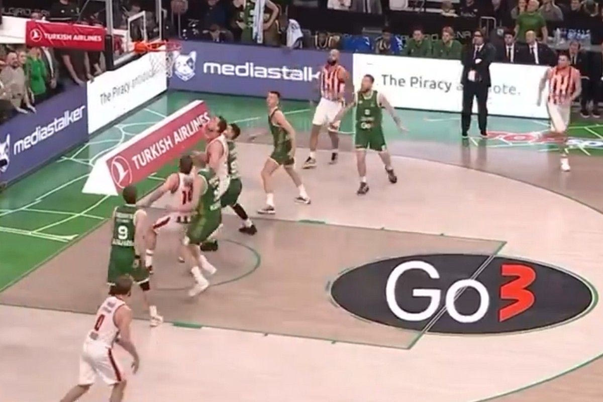 Ο Ολυμπιακός χρειαζόταν πάση θυσία ένα καλάθι στο φινάλε του τρίτου δεκαλέπτου για να μειώσει την απόστασή του από την Ζάλγκιρις και ο Εβάν Φουρνιέ ανέλαβε δράση, για να σκοράρει νικώντας όλη την άμυνα των Λιθουανών.