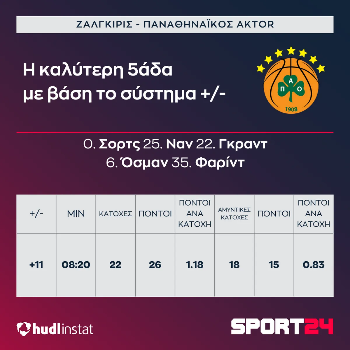 Η αλήθεια βέβαια είναι ότι ο Παναθηναϊκός AKTOR πήρε πολλά από πολλούς, βλέποντας μεταξύ άλλων τον Ομέρ Γιούρτσεβεν να προσφέρει 14 πόντους σε 13 λεπτά συμμετοχής. Οι δύο παίκτες που κουβάλησαν το “τριφύλλι” στο σκοράρισμα ήταν ο Τζέντι Όσμαν (22 πόντοι σε 33 λεπτά συμμετοχής) και Κέντρικ Ναν (21 πόντοι σε 30 λεπτά συμμετοχής).