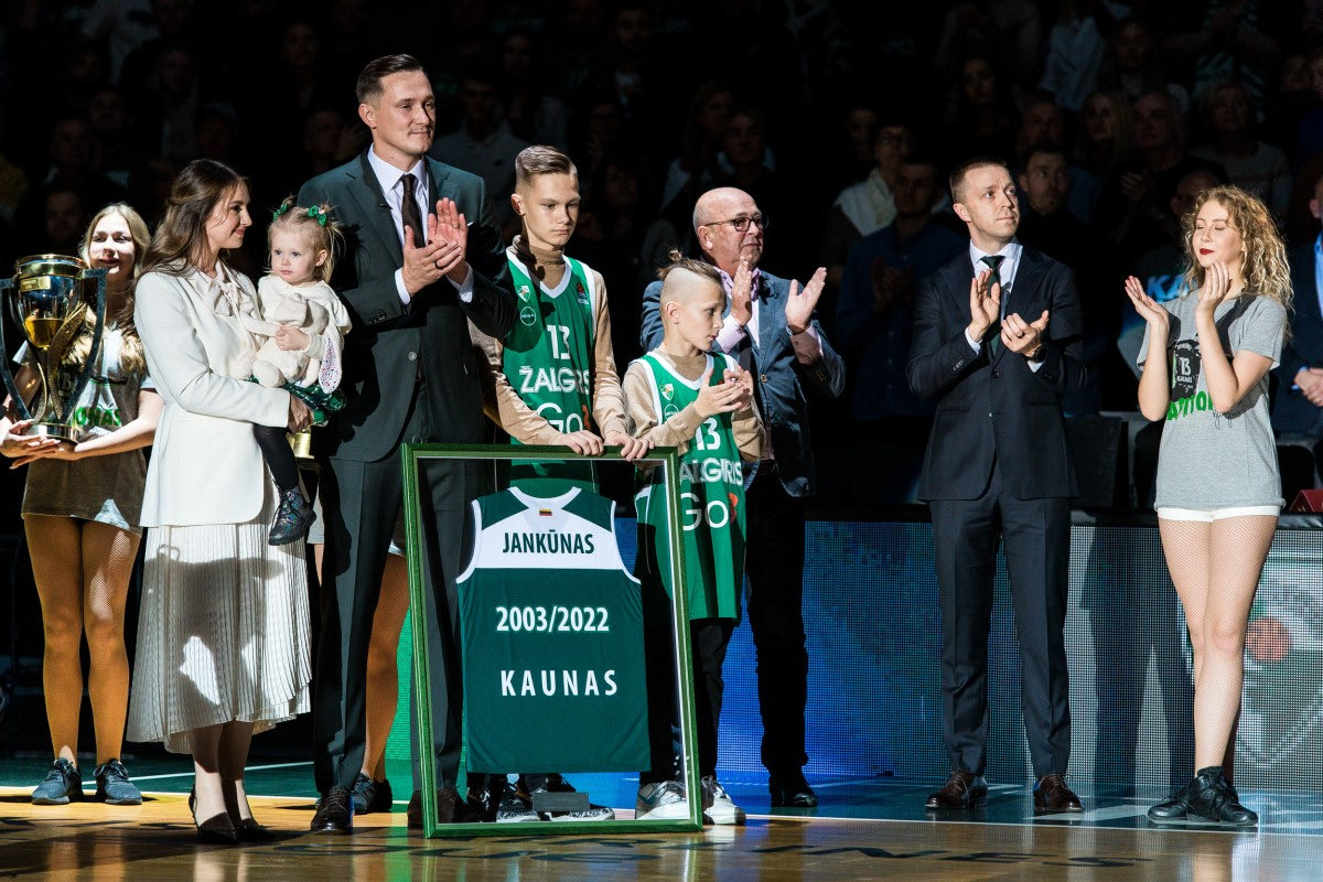Στο πρώτο της φετινό εντός έδρας παιχνίδι για την EuroLeague η Ζαλγκίρις Κάουνας φρόντισε να τιμήσει τον Παούλιους Γιανκούνας όπως του αξίζει, αποσύροντας τη φανέλα με το Νο13. Ο θρυλικός Λιθουανός ήταν εμφανώς συγκινημένος, έχοντας δίπλα τη σύζυγό του και τα τρία τους παιδιά, λαμβάνοντας ένα πολύ θερμό χειροκρότημα από τον κόσμο που είχε κατακλύσει τη Ζαλγκίριο Αρένα.