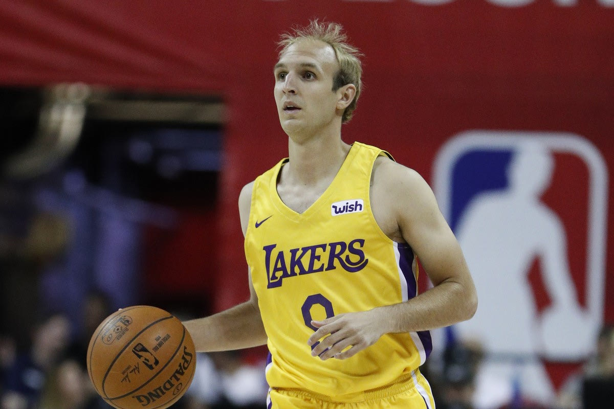 Ο Κόνερ Φράνκαμπ με τη φανέλα των Λος Άντζελες Λέικερς σε αγώνα κατά τη διάρκεια του summer league