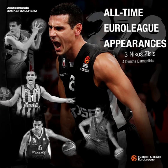 Το παιχνίδι με τη Φενέρμπαχτσε είχε ιστορικό χαρακτήρα για τον Νίκο Ζήση, ο οποίος ξεπέρασε τον Δημήτρη Διαμαντίδη σε συμμετοχές στην EuroLeague. Ο γκαρντ της Μπάμπεργκ, που ξεκίνησε τη διαδρομή του στις 7 Μαρτίου 2001, με τη φανέλα της ΑΕΚ, ανταγωνίζεται πλέον τον Φελίπε Ρέγες με φόντο τη δεύτερη θέση. Η πρωτιά ανήκει εδώ και αρκετό καιρό στον Χουάν Κάρλος Ναβάρο, κι όπως φαίνεται είναι εξαιρετικά δύσκολο να αμφισβητηθεί από τους δύο παίκτες που τον ακολουθούν στη σχετική λίστα.