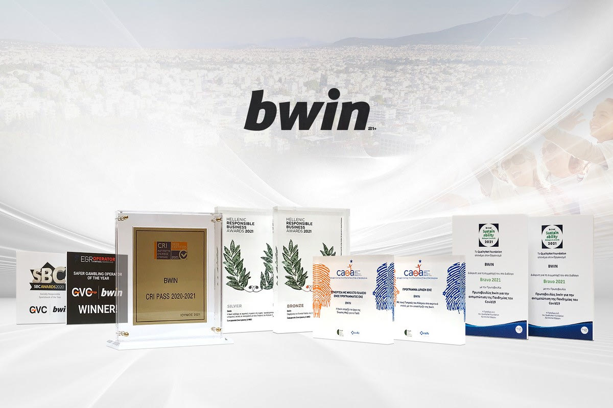 H αρχή έγινε σε παγκόσμιο επίπεδο, με τη βράβευση της μητρικής εταιρείας της bwin, της Entain, ως “Safer Gambling Operator of the Year” στα EGR Operator Awards 2020. Το βραβείο αυτό ήταν μια επιβράβευση της σκληρής δουλειάς του διεθνούς brand στον τομέα της ασφάλειας του παίκτη, καθώς και στη στρατηγική για ασφαλές και Υπεύθυνο Παιχνίδι. Λίγες μέρες μετά, ήρθε και η διάκριση ως “Socially Responsible Sportsbook of the Year” στα SBC Awards 2020, για την πρόληψη και τις κοινωνικά υπεύθυνες δράσεις που γίνονται ώστε να προστατευτούν και να βοηθηθούν οι άνθρωποι που αντιμετωπίζουν προβλήματα με το παιχνίδι τους.