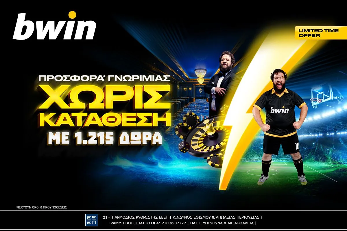 bwin – Μέσα στο παιχνίδι με 1.215 δώρα! Νέα προσφορά* γνωριμίας χωρίς κατάθεση.