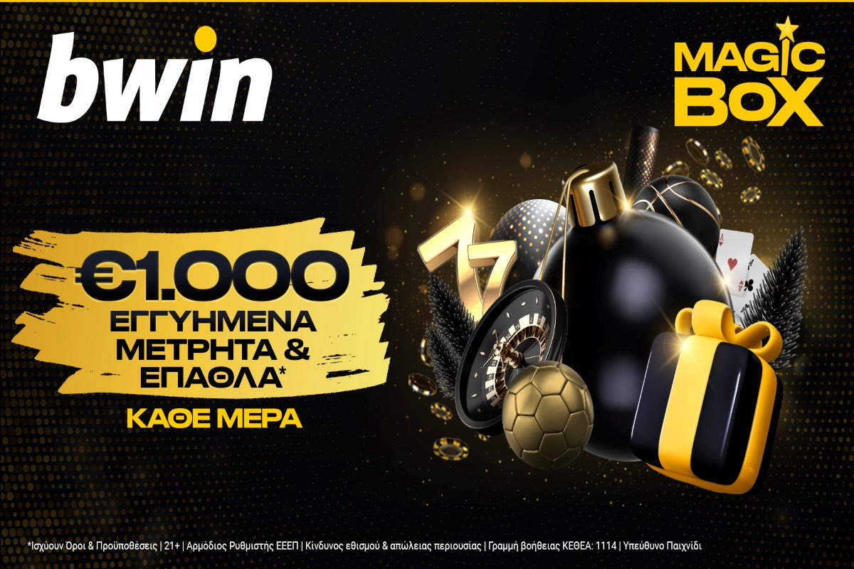 Η πιο όμορφη εποχή του χρόνου καταφτάνει και στην bwin τη ζεις νωρίτερα και σε άλλο επίπεδο! Κι αυτό, γιατί το… unboxing και φέτος είναι διαφορετικό στην κορυφαία στοιχηματική πλατφόρμα! Το εορταστικό Magic Box, σου δίνει την ευκαιρία να κάνεις δικά σου €1.000 μετρητά κάθε μέρα μέχρι και τις 10 Ιανουαρίου! Τα δώρα όμως δεν τελειώνουν εδώ!