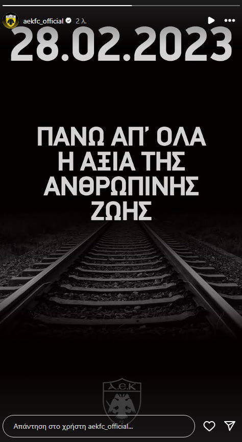 Ανάρτηση με αφορμή τη συμπλήρωση των δύο ετών από το δυστύχημα των Τεμπών έκανε η ΠΑΕ ΑΕΚ, η οποία έστειλε το δικό της μήνυμα για την τραγωδία.