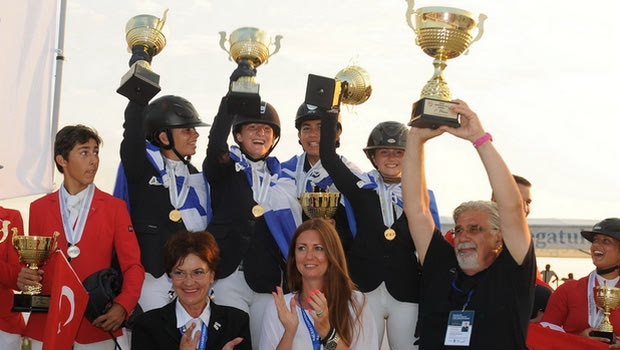 Στην Κατηγορία Ενηλίκων, οι αθλητές μας Γρηγόρης Βόγλης με την Quelly Briquedale, Αλέξανδρος Φουρλής με τον Grandeur, Πάρις Κουτσογιάννης με την Daouschka και Άννα Παπαγεωργίου με τον Vania κέρδισε το ασημένιο μετάλλιο στο ομαδικό αγώνισμα. Οι Έλληνες ιππείς συγκέντρωσαν στους δύο γύρους 15 βαθμούς. Στην 1η θέση ήταν η Ρουμανία με 8 βαθμούς και στην 3η η Τουρκία με 17 βαθμούς ποινής.