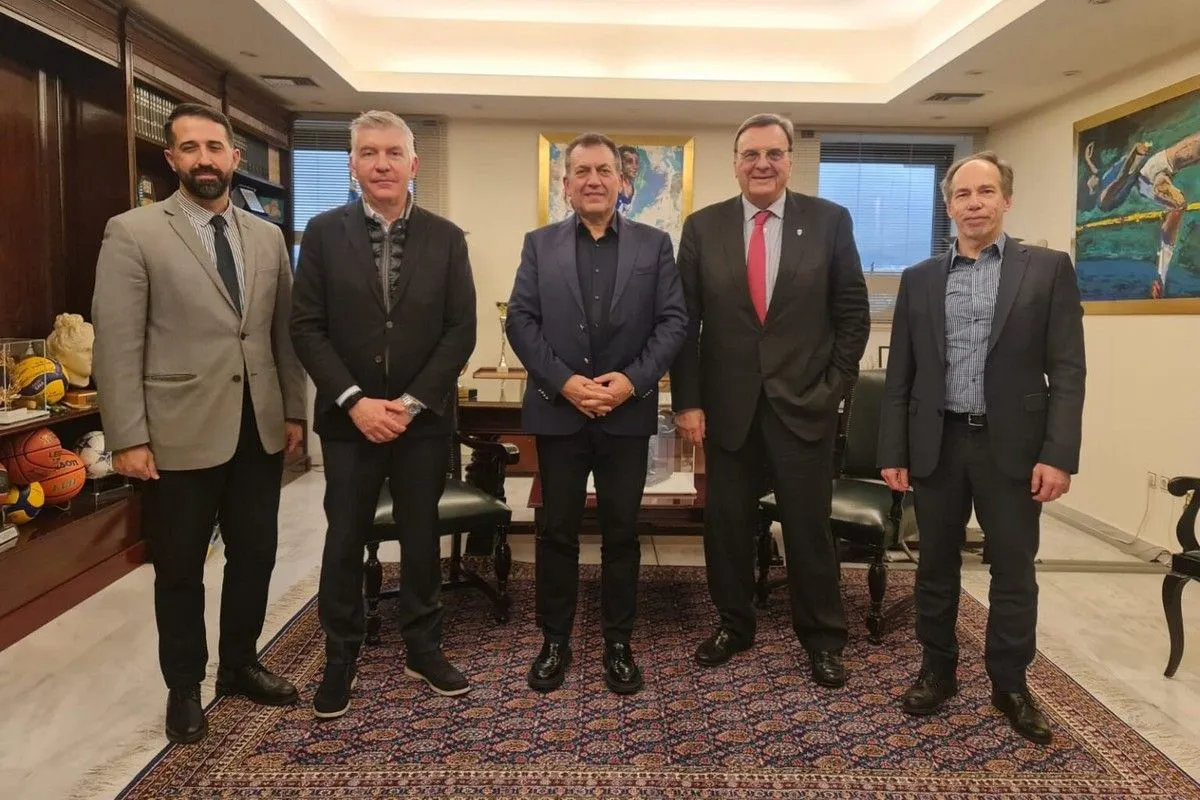Σε εξαιρετικό κλίμα πραγματοποιήθηκε στο Υπουργείο Αθλητισμού συνάντηση του Υπουργού Αθλητισμού, Γιάννη Βρούτση, με τον Πρόεδρο της Ελληνικής Ολυμπιακής Επιτροπής, Ισίδωρο Κούβελο, τον Γενικό Γραμματέα της ΕΟΕ Στέφανο Χανδακά και τον Γιάννη Κάππο, Πρόεδρο της ΕΦΙΠΗΔ, παρουσία του Γενικού Γραμματέα Αθλητισμού, Γιώργου Μαυρωτά.