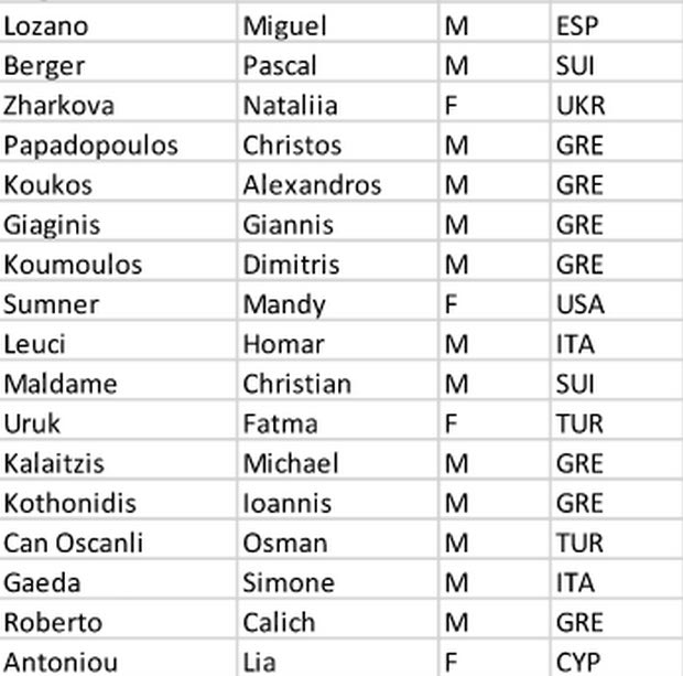 Ακολουθεί η λίστα των συμμετεχόντων: