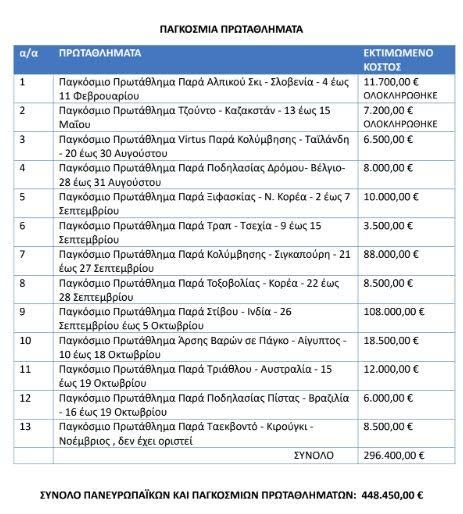 Παράλληλα, σε ενημερωτική της επιστολή της 27ης Μαΐου 2025 προς τον Υπουργό Αθλητισμού, Γιάννη Βρούτση, η ΕΑΟΜ ΑμεΑ παρέθεσε τον προϋπολογισμό της για τις διεθνείς διοργανώσεις (Ευρωπαϊκά και Παγκόσμια Πρωταθλήματα) του τρέχοντος έτους, με εκτίμηση κόστους τους 448.450€