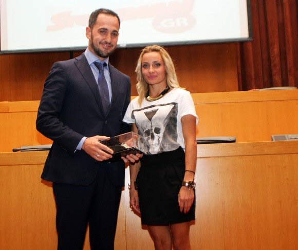 Ο κ. Ντίνος Οικονόμου την αθλήτρια του στίβου Αναστασία Καρακατσάνη.