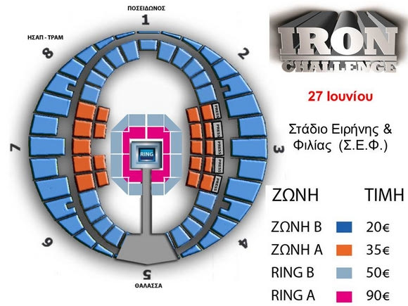 Ξεκινά σήμερα η προπώληση των εισιτηρίων για τον τελευταίο αγώνα του Μιχάλη Ζαμπίδη και το Iron Challenge. Εισιτήρια από 15 ευρώ για τη μάχη Τιτάνων στις 27 Ιουνίου στο ΣΕΦ.