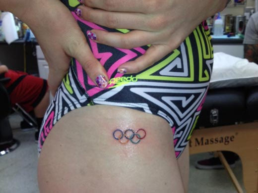 Η συμμετοχή στους Ολυμπιακούς Αγώνες εξασφαλίζει σε όλους το δικαίωμα να φέρουν τους ολυμπιακούς κύκλους. Το γύρο του κόσμου χάρη στο Twitter έκανε το πρώτο τατουάζ της 17χρονης Μίσι Φράνκλιν. Η καλύτερη κολυμβήτρια στον κόσμο κατέκτησε πέντε μετάλλια στο Λονδίνο και πλέον φέρει τους ολυμπιακούς κύκλους στο δεξί γοφό της.