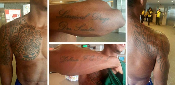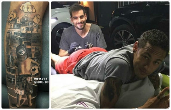 Το Νο1 ποδοσφαιρικό είδωλο της Βραζιλίας έχει πολλά τατουάζ. Το πιο πρόσφατο που έχει γίνει στο αριστερό του πόδι, έχει αναφορά στην παιδική του ηλικία. Δείχνει ένα μικρό παιδί από την Βραζιλία που ονειρεύεται μια ποδοσφαιρική καριέρα, να έχει το δικό του σπίτι και να κατακτήσει το Champions League.